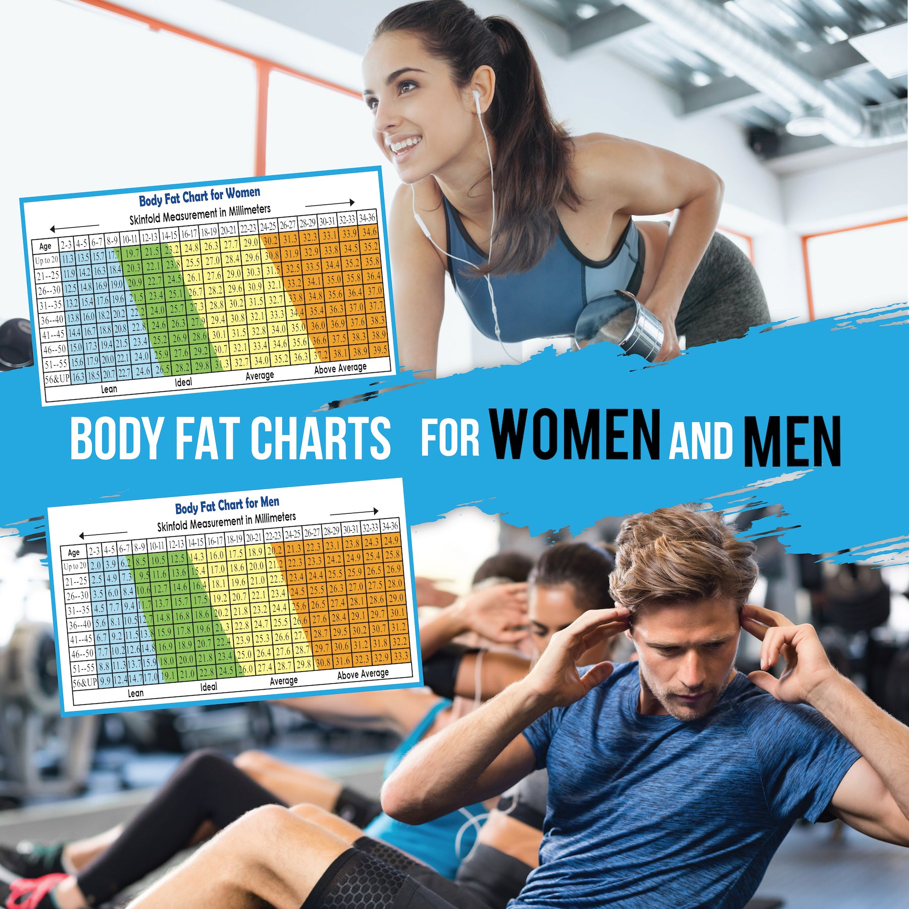- Plain to See! Based on your skinfold thickness and age, the included body fat charts for men and women will show your fat percentage. The charts will also indicate where you stand in the lean-ample body spectrum.
