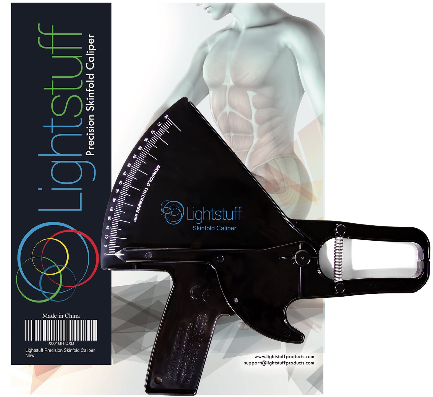 Lightstuff Precision Skinfold Caliper - Easy, Reliable Tool for Monitoring Body Fat - Quick Start Guide for Beginners, Detailed Booklet for Advanced Users - Measures up to 80mm in Skin Fold Thickness